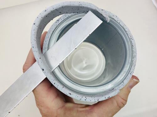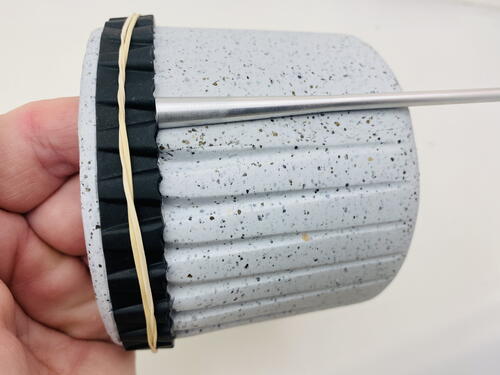 Roll one half package of Original Sculpey Gray Granite to a thick sheet that is large enough to completely wrap around the vase one time.