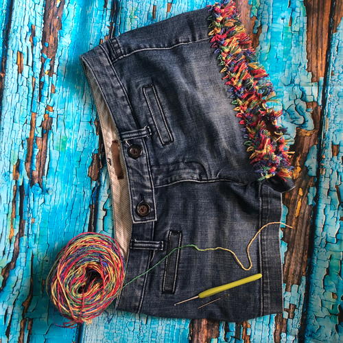 Do you want to look like a Bohemian babe without having to pay an arm and a leg at expensive clothing stores? We have the perfect solution for you that puts your crochet skills to fashionable work! Out of all the ways to recycle old jeans, this technique by Darn Good Yarn is by far the most haute couture. Don’t throw away shorts that don’t fit your style. This quirky, colorful, and chic project will show you what to do with old shorts that will make you the fashion icon of the summer. With rainbow tassels expertly woven into the hem of your shorts, these denim darlings will make it so that there’s no way you won’t turn heads.
