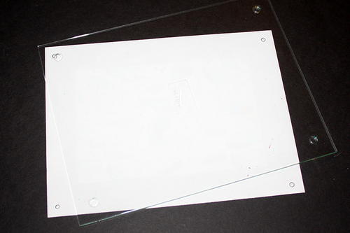 Separate the 2 pieces of the frame by unscrewing the posts at each corner then lay one piece on top of the back of your colored paper. Mark where the holes are at each corner of the frame then punch a hole over the mark. The holes will accommodate the post when the frame is assembled.