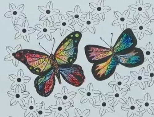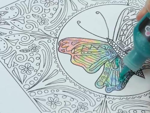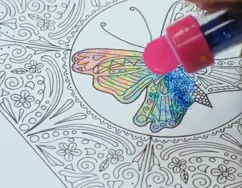I do the adult coloring books. I have not done mine since the dead of winter, though, and seeing this is like it will breathe new life to my work. I wonder how she came up with this? I like the addition of the glitter idea! so I would add glue carefully to the area, perhaps a glue stick or glue pen, then shake loose glitter? I know they have glitter glue in pens, though, too!