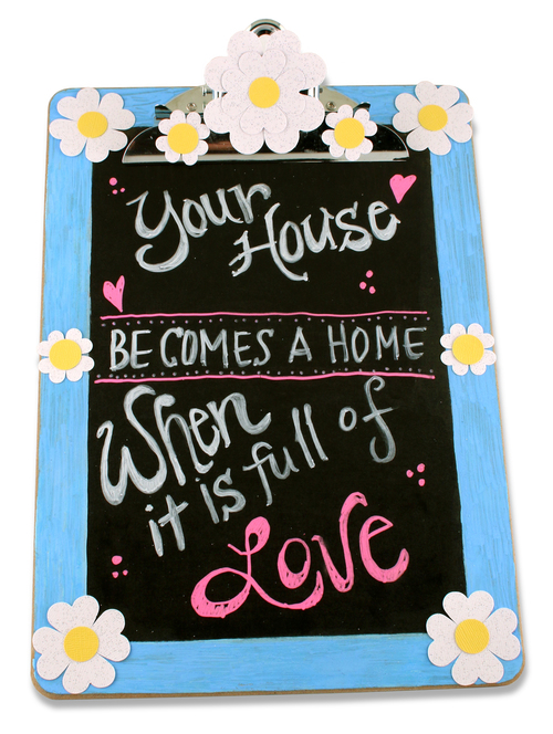 Leave inspirational messages for family and friends with this Daisy Clipboard Chalkboard. Easy to customize and decorate, this clipboard is great for your living room or classroom! Kids can even get in on the fun of making this clipboard. It would make a wonderful teacher's gift and you can make the message on the board say whatever you'd like. Decorate it with sweet spring flowers to help bring a touch of beauty into your home. This is a fun and easy project that kids and adults will love to make.
