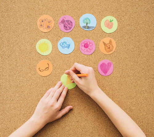 - Focus on number sense by changing the pictures to numbers. Have the player count out the buttons to match the written number.