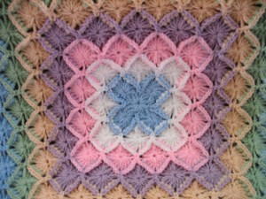 I made this in pinks, roses, and lilacs for a baby afghan, turned out beautiful