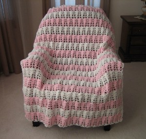 - Repeat Rows 3 – 10 as follows for a total of 68 rows: (4 rows lily pink, 4 rows white) 8 times, 4 rows lily pink