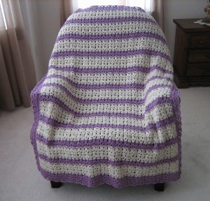 This afghan looks as good as it sounds! Switch off crocheting large stripes of Aran and Orchid yarn to create this beautiful Blueberry Lemonade Crocheted Afghan Pattern. Great for year-round comfort, this simple crocheted afghan pattern is one you'll find yourself coming back to again and again! Like most afghans, this pattern is easy to customize...so if you're looking for something more seasonal or you want to make a baby blanket, simply change the yarn colors to suit you needs and you have a whole new afghan to look at and admire!