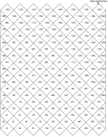 This is a beautiful throw. The motifs work up quickly which to me is important to avoid monotony. There are a total of 161 motifs. 8 of Sq A, 9 each of Sq B and D. The rest of the motifs are Sq C (135 if my math isn't messed up). My only tip, reference Sq C, is when picking up the foundation row for Sq C from the second square is to slip hook under the adjoining yarn to give the joining a less holey look.