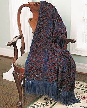 This free crochet pattern from Bernat Yarns features a unique textured double crochet stitch and a classic fringe. A nice crochet afghan will keep you warm through the winter. This afghan is an editorial team favorite of our large hook crocheted afghan patterns. Use worsted weight yarn to achieve this one of a kind look. If you love to curl up by the fireplace and read a good book, this is the perfect afghan pattern for you.