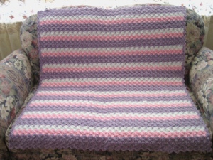 I love this pattern, even in the stripes. It looks so delicate, airy and lacey. This would a wonderful project to make for a baby shower gift. However, it would be just stunning if it was done in white for a christening gift. I just love the way this pattern looks.