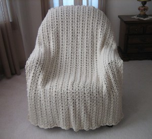 Whether you're curled up by the beach or just dreaming of seaside serenity, this Cape Cod Afghan is a great way to keep your legs warm as you dive into a great beach read. Worked up using a simple creamy white yarn, this crocheted afghan makes a wonderful home accent to almost any decor scheme. Great for beginners, this afghan has a light and lacy look, so you can snuggle up with it even during those cool summer evenings. Indulge in beachy daydreams with this lovely Cape Cod Afghan.