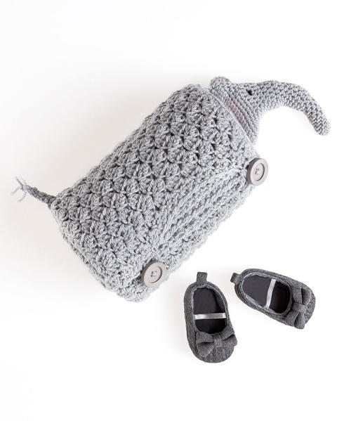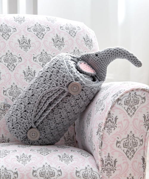It's true: this is The Most Adorable Elephant Crochet Baby Blanket. At a glance, this adorable baby blanket pattern looks like an ordinary, gray, gender-neutral baby blanket. Not so! Lovey meets blanket meets pillow with this fantastic project. Crochet a darling elephant with the body of a giant blanket. Learn how to roll up the blanket to create the precious elephant pillow. If your new baby loves elephants, or if you want to decorate the nursery with these charming creatures, this crochet baby blanket pattern is the perfect option. Learn how to crochet a baby blanket that no one will forget with this darling tutorial from Red Heart.