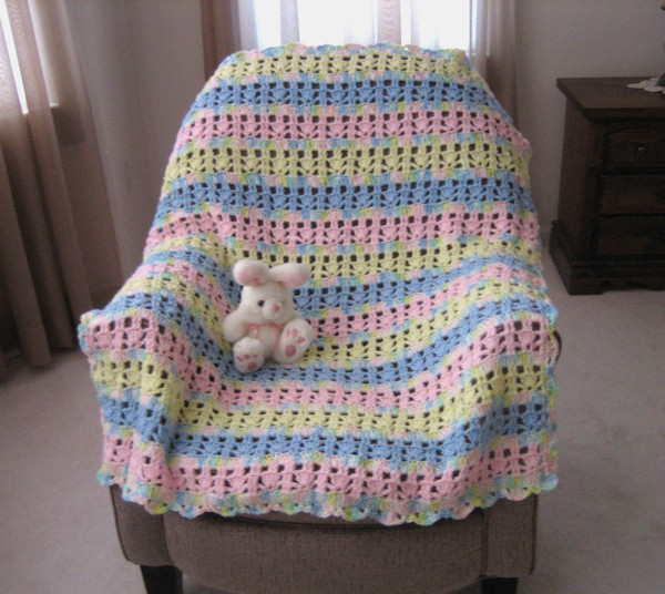 Your baby will love cuddling up with this Over the Rainbow Afghan. Striped in soft pastel colors, this afghan is great for naptime or bedtime. Also great for baby showers and gifts, this crocheted afghan is easy to make and is fun to work on over the course of a weekend. Expecting moms will also love working on this blanket as they wait for their little one to arrive. With sweet dreams of happy little blue birds and blue skies, this Over the Rainbow Afghan is sure to lull baby into dreamland.