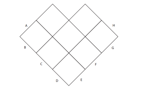 Following granny square bag layout diagrams below, join Motifs tog, matching lettered sides, using rows of sc through back loops.