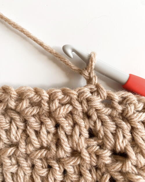 Row 2: (WS) Ch1, turn, *ch1, sk1, sc1, repeat after * for the row.