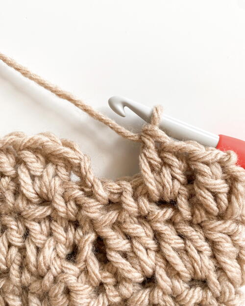 Row 3: Ch2, turn, *sk1, 2dc, repeat after * for the row.