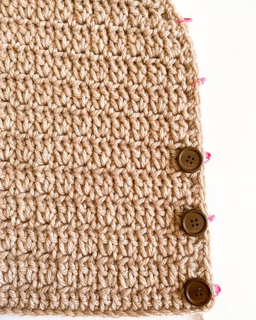 Notes: If you prefer no buttons, don’t work the skipped chains for the button row; just work each stitch as you normally would.