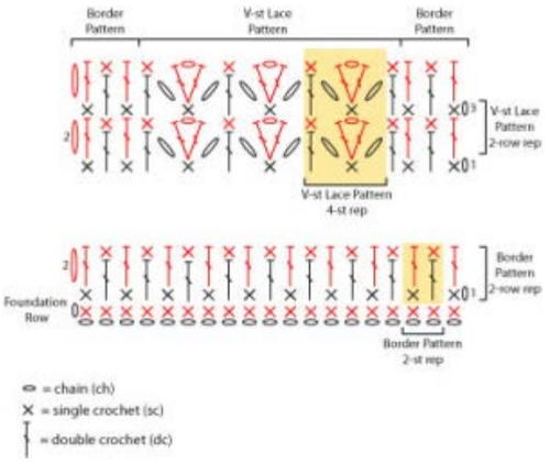 V-st Lace pattern and Border pattern can be worked from written instructions or by following the
