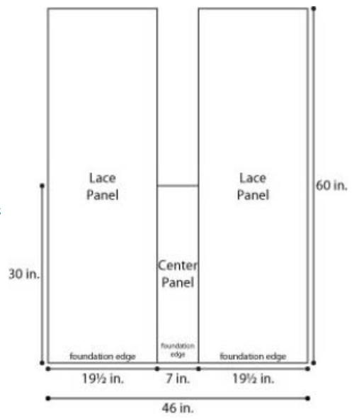 The Panels are sewn together at side edges, with the Center Panel between the 2 Lace Panels.