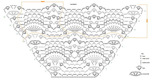 This Sidewalk Shawl looks very beautiful and having the pattern right here is great. I love the pineapple type of pattern in this one. I see there is no stitch chart, so not too sure what "shell" stitch is being done? So do we make up our own? Even with the chart, I can't tell. Has anyone made this beautiful shawl yet, if so how did it turn out and what shell stitch did you do? Thank you for sharing this free crochet pattern.