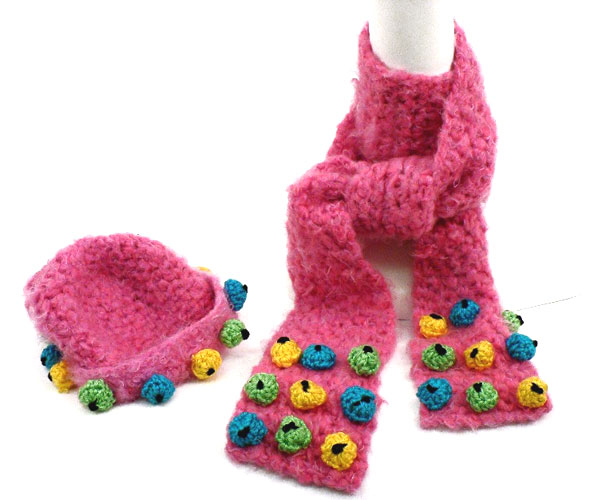 Crochet a colorful cold-weather set for you or your children with this Bobble Scarf and Hat set. Embellished with colorful bobbles and worked up with brightly-colored yarn, this winter accessory set is great for kids and adults of all ages! This set would also make a wonderful gift for a little girl or boy (just change the yarn colors to make it suitable for a boy). This is a fun and easy crochet project that you'll have so much fun making!