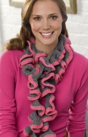 This feminine Cascading Potato Chip Scarf from Red Heart Yarn is a great way to learn to crochet. Fashion scarves like this complement almost any outfit and are perfect for any season. Mix and match colors to create scarves for all your friends.