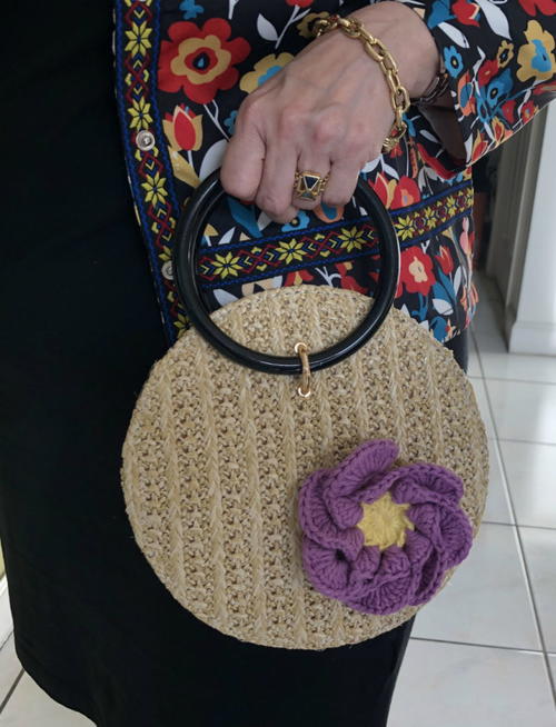 From the Designer: "Crochet or Knitting are not familiar to me. I made a 3D flowers just following the instructions that I found in a video tutorial. I could change the appearance of my purse and convert it in unique purse. I combined two different colors of yarn from Spinrite and now I am encourage to continue exploring the endless possibilites that I have created with yarn. It is an easy and friendly product created to be used by newest like me or by experts. Create this only took me an hour and now I have an unique finished product."