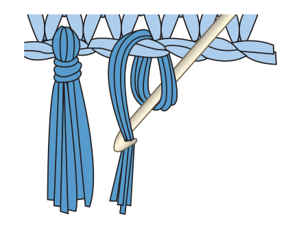 Fringe: Cut lengths of yarn 48" [122 cm] long. Taking 1 strand, fold in half and knot into fringe along entire bottom edge of Wall Hanging. Trim fringe as shown in picture.