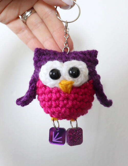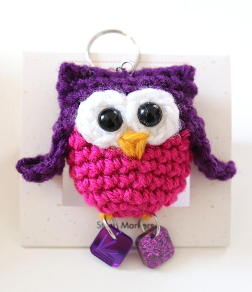Attach key ring to the top of the owl head.