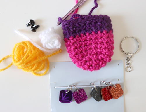 From the Designer: "Hoooo loves Gosadi?! We do! Gosadi is game changer for pattern designers and makers like me so what better way to celebrate the launch of their program than with an adorable amigurumi owl keychain that you can carry with you at all times! I received these stitch markers from the Gosadi swag bag at the Prime Publishing networking event at h+h Americas. I knew I needed these stitch markers handy at any moment. I created a little crochet owl that is holding on to them with its tiny talons! And with a keychain secured to the top of the owl, I can attach it to my purse or car keys. Cute, convenient, and a conversation starter!"