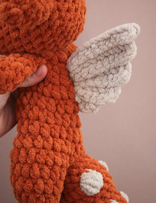 Whip stitch the wings to the center back of the body, using rounds 2 to 4 of the body as a guide for placement.