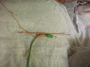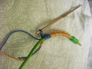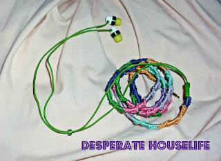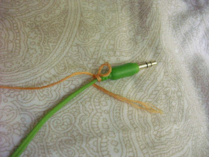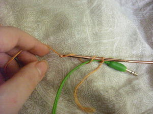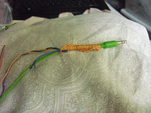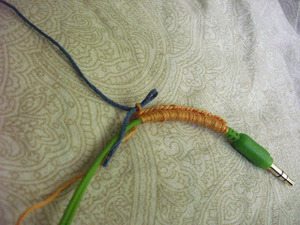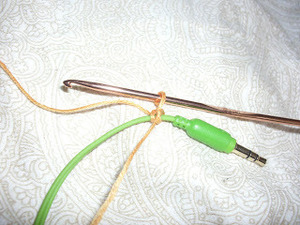 - Keep going until you reach where the cord breaks off into the 2 ear buds. I chose not to crochet the earbud cords, so that I can adjust them as needed.
