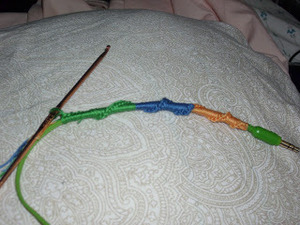 - Crochet as far as you want with the first color. I did about 2 inches of each color.