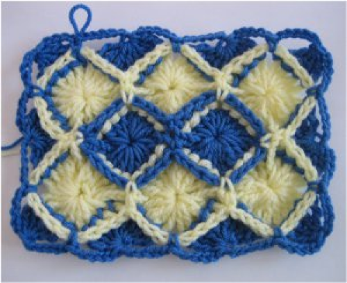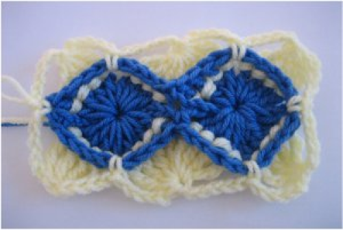 To make a longer rectangle, work beginning ch in multiples of 10 plus 2 more. Each small shell repeat uses 10 chs.