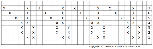 Rnds 20-26: Work 7 rows of chart around entire hat. You should have 15 ribbon motifs.
