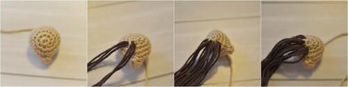 Sew the hat to the head. Make sure to shape the hat over the nose. Knot the yarn and weave it in.