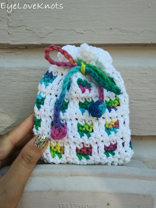 "This sweet little bag is worked using the mosaic crocheting technique - it is made with simple stitches so it is really easy, and so fun to experiment with color combinations. I love the way it looks with a variegated yarn as the base, and a coordinating solid on top. You can use this bag as a soap cozy, favor/candy pouch or small gift bag. It took me just under 45 minutes to work this one up."