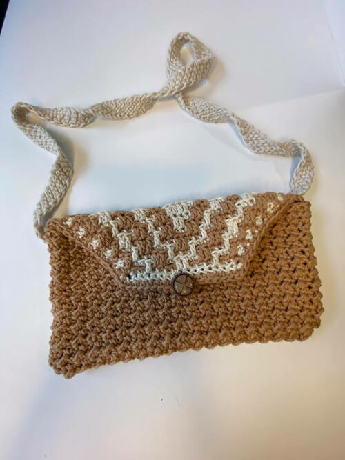 "This small crochet handbag pattern is a charming little accessory which combines the timeless appeal of mosaic crochet with the modern convenience of a compact bag. Perfect for carrying your essentials – phone, keys, and a touch of retro style – this handbag is a delightful project for crocheters of all levels. Crafted from your favourite scrap yarns in two contrasting colours, the Vintage Mosaic Handbag is a wonderful way to use up leftovers while creating a unique piece. The Tunisian crochet strap adds a touch of texture and durability, making this bag both stylish and practical. Whether you're heading out for a leisurely stroll or a night on the town, the Vintage Mosaic Handbag is the perfect companion. Size: My finished bag measured 7.5" x 4.25" (20cm x 11cm). My bag strap was 46" (116cm) long "