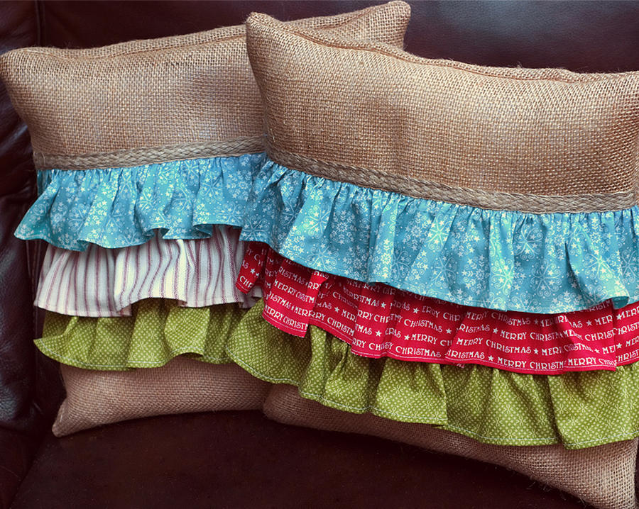 These Ruffled Christmas Throw Pillows, for example, are a quick and easy way to give your home that Christmas-y feel. Made from burlap and a variety of holiday-themed fabric strips, these Christmas throw pillows can instantly add a nice country charm to your holiday decor. Not looking for holiday patterns quite yet? Use this same pattern to create pillows for any season or occasion! Replace the holiday fabric with the fabric patterns of your choice to make lovely accent pillows that would look great in a living room or bedroom.