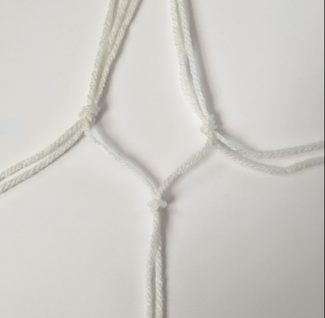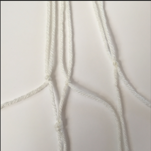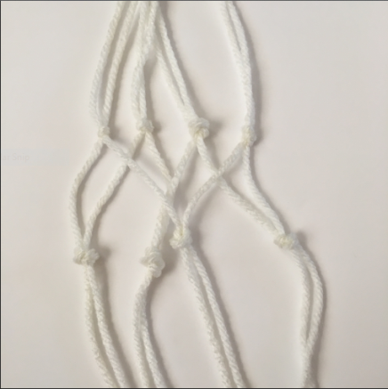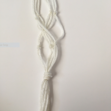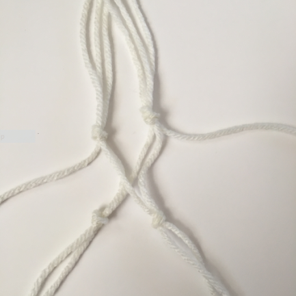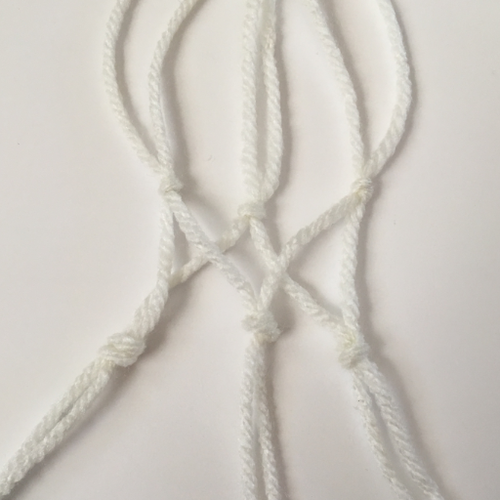 Step 7: Knot remaining strands together in line with knots made in Steps 5 and 6. There should now be 8 knots.
