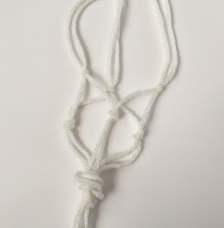 Step 4: Separate strands into groups of 2, knot each group together 12" (30.5 cm) below ring to make 4 knots.