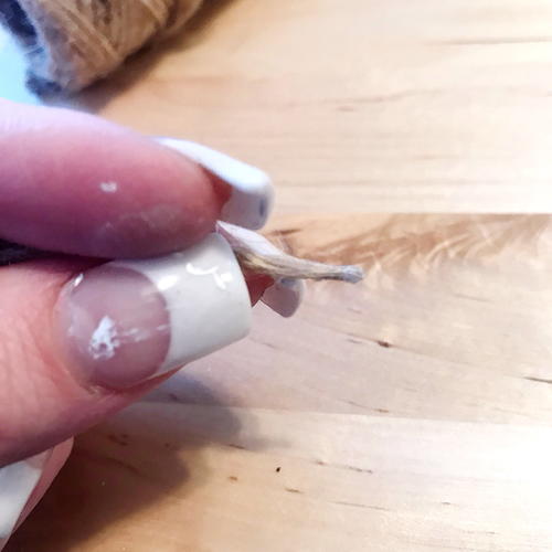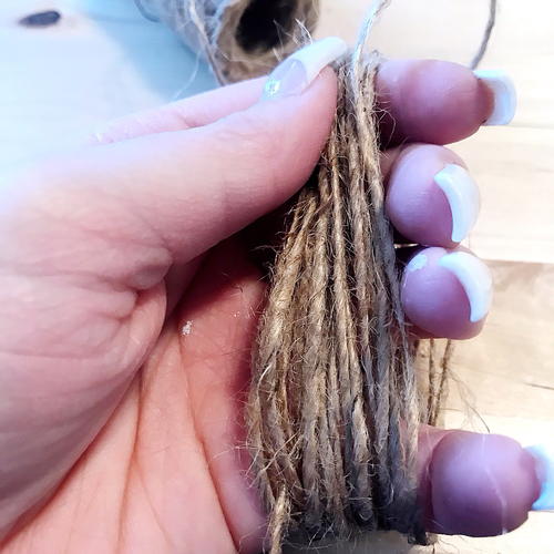 Then you will want to wrap the twine around your hand about 10 times. It could possibly be more or less. It depends on how full you want your tassel