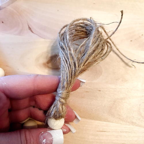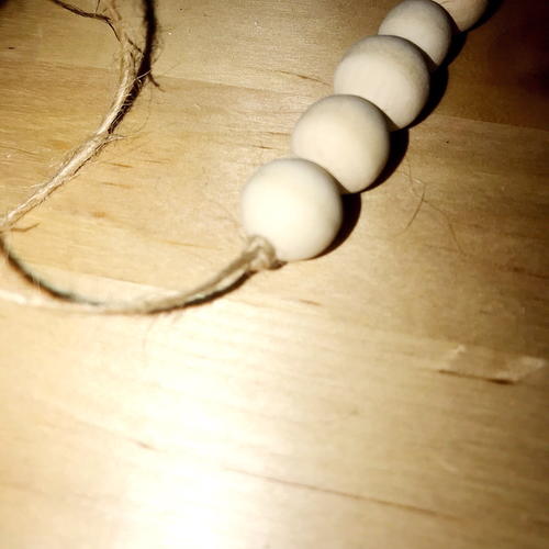 After I was done stringing on the wood beads I tied a knot in the end of the DIY Wood Bead Garland.