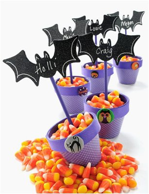Use a combination of Mod Podge and FolkArt Extreme Glitter to create Halloween place card holders that are spook-tacular for your Halloween party.