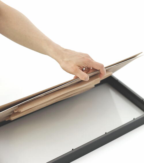 Once the glue has fully cured, insert the backing into the shadow box frame.