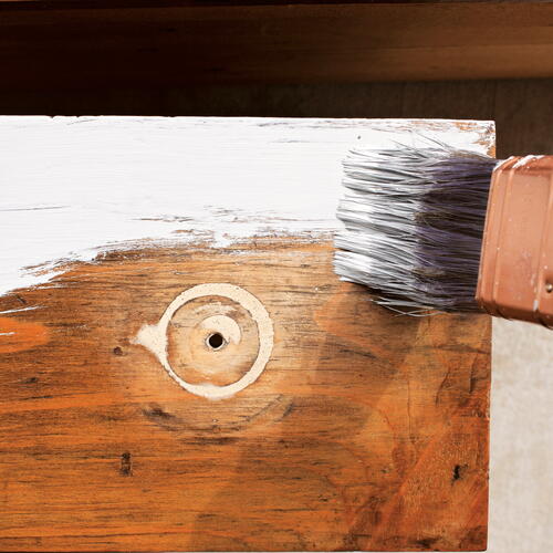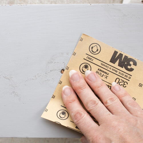 Let the paint dry for about 10 minutes. Very lightly sand over the white painted areas with 320-grit sandpaper to give it a timeworn, faded look. Also sand near the edges of the drawers and dresser body to let the original wood show through some.