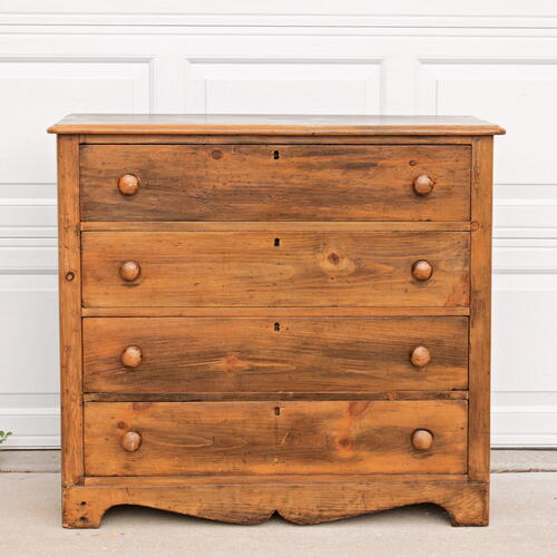 If furniture could talk, I’m sure this piece would tell some incredible stories from its lifetime. Even though the finish was a bit dated, the late-1800s Knapp joints, primitive nails, and keyholes have such rustic charm. And the drawers all slid smoothly, which is a rare find in such an aged piece!