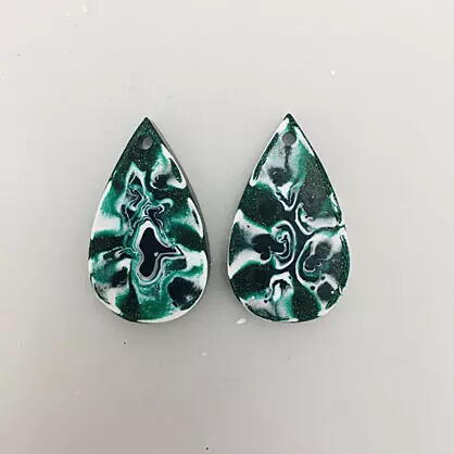 Turn heads at your next night out with these beautiful Liquid Faux Malachite Earrings from Sculpey®! Made with Liquid Sculpey® Emerald Metallic and classic White Liquid Sculpey, these earring pendants end up with a shiny and unique finish that closely resembles malachite. Plus, these earrings only take 90 minutes to make, bake, and assemble with Sculpey's jewelry making mold and materials! Look and feel your best while sporting earrings that you made yourself, or help a loved one do the same by gifting them this beautiful accessory that looks professionally-made!