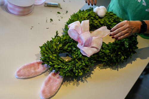Attach the bunny ears to the smallest wreath with floral wire.