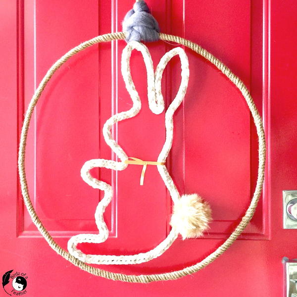 "With Easter approaching, try your hand at this adorable Easter Bunny wreath to dress up your front door. First crochet a 3-stitch tube, called an i-cord, and then feed the wire through the centre of the i-cord once the bunny is bent into shape. Additional wire forms the rustic circular wreath – covered in a 3-ply rope that is twisted onto the wire. Use up whatever you have on-hand or find the supplies at the dollar store! There’s a free pdf template to help get you started that's already scaled to size. It’s a fun little project to welcome Spring!"