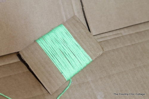 The pompoms in the book all used A LOT of yarn. They were very dense. So wrap, wrap, wrap until you have a bunch of yarn on your cardboard.