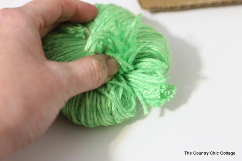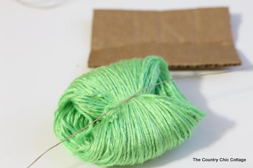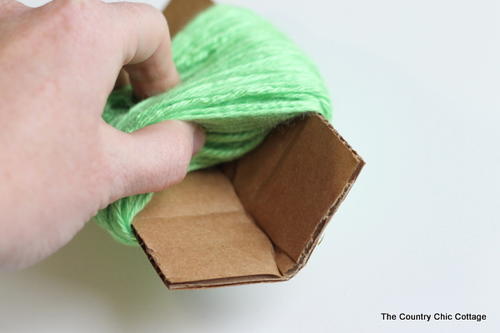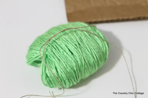 I slipped my hemp into that tunnel and tied off my yarn in the center.